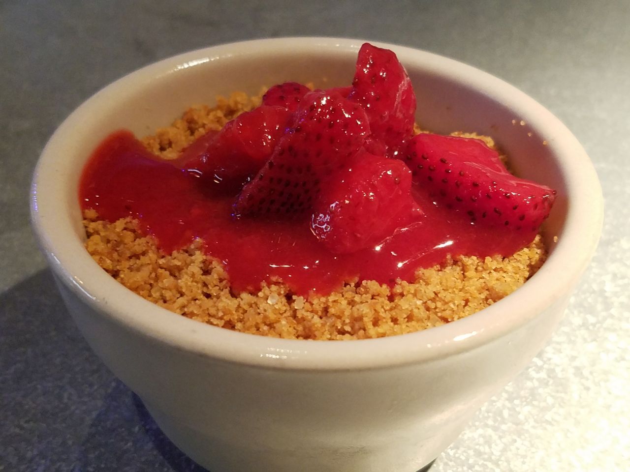 Strawberry cheesecake for two at $6 is just enough dessert if you crave a sweet and discreet finale.