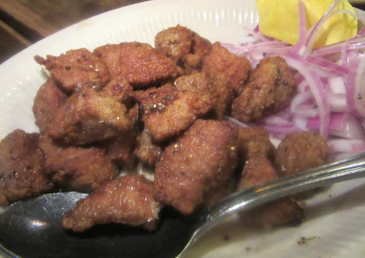Turkish style liver is cut in small chunks and fried, a $10 listing under hot appetizers.