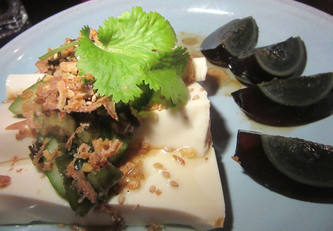 Delicte soft tofu like a lush panna cotta is served with a mildly flavored 1,000-year-old egg.