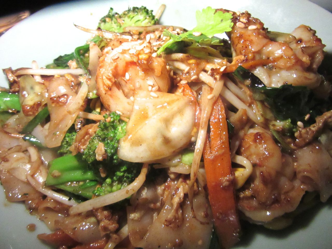 If numbing noodles are too hot for your buddies, try chow fun noodles with beef or tofu. We asked for shrimp.