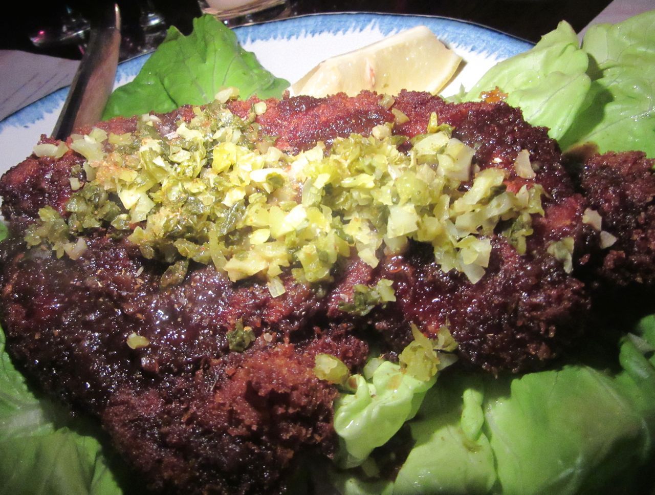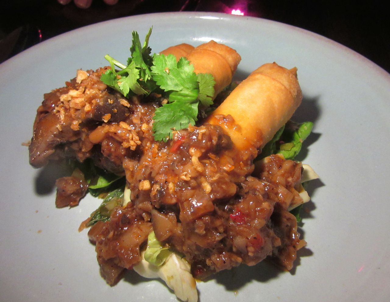 And it seems odd that the balls of “Singapore Chili Crab Cake, supposedly made with wild shrimp, are almost watery, while the thick sauce they float in is fabulous. The dish is sent by the kitchen so we don’t overlook a “signature,” the server advises.