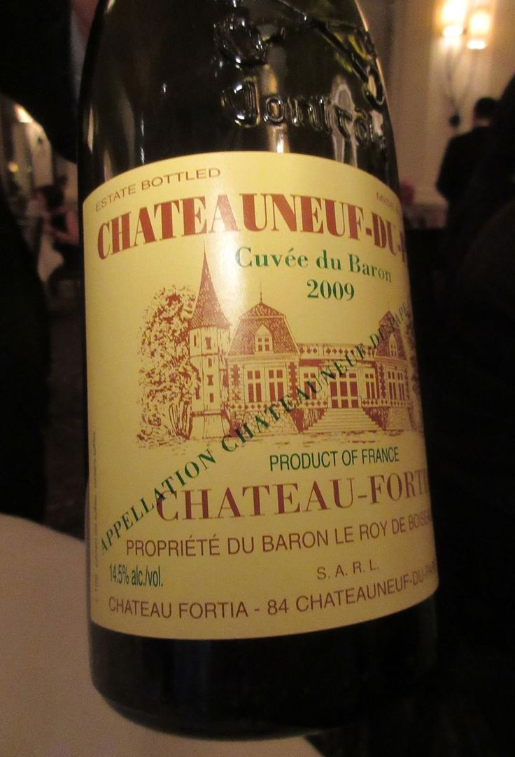 My pal selects a Chateau Fortia “Couple du Baron” Chateau Neuf du Pape for our red wine.