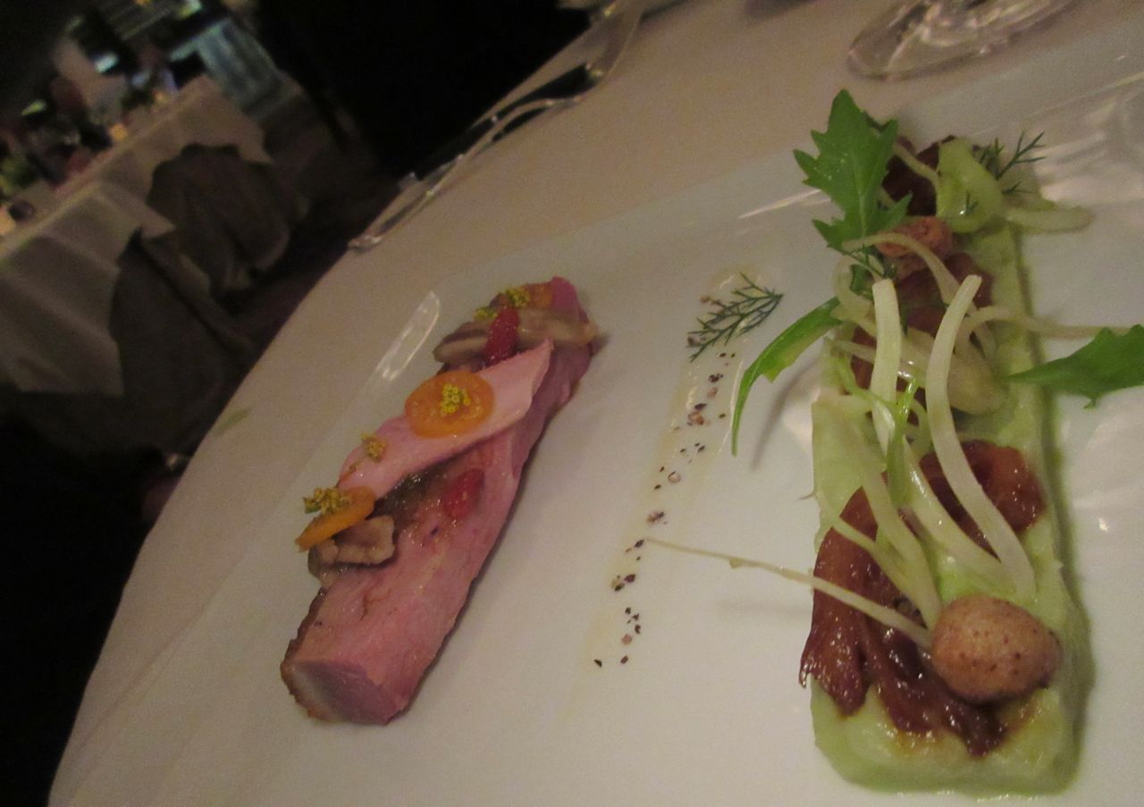 Liberty Farm duck breast comes with Dandelion flower marmalade, gooseberries, gojis and fennel.