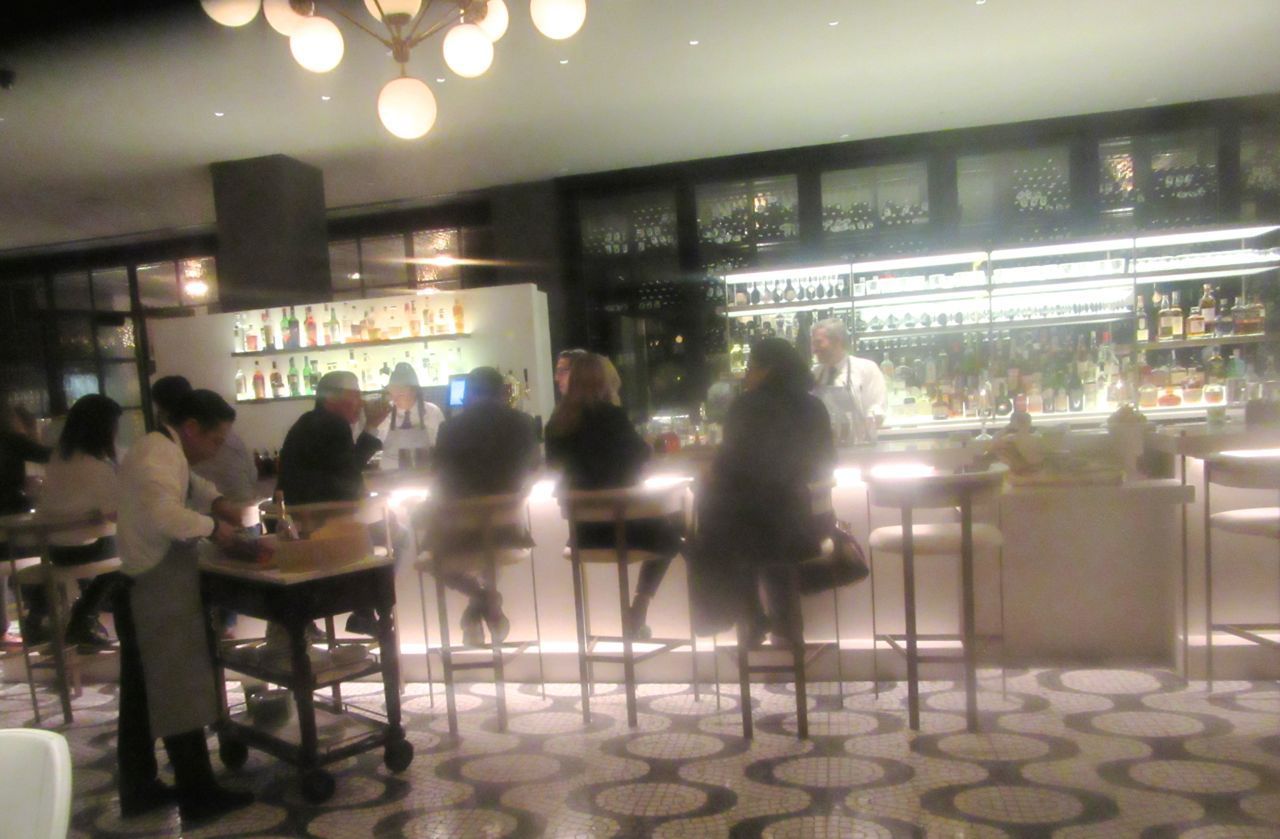 At dinnertime, the long white bar in the arrival area is reserved for drinkers. But there is a scattering of tables.