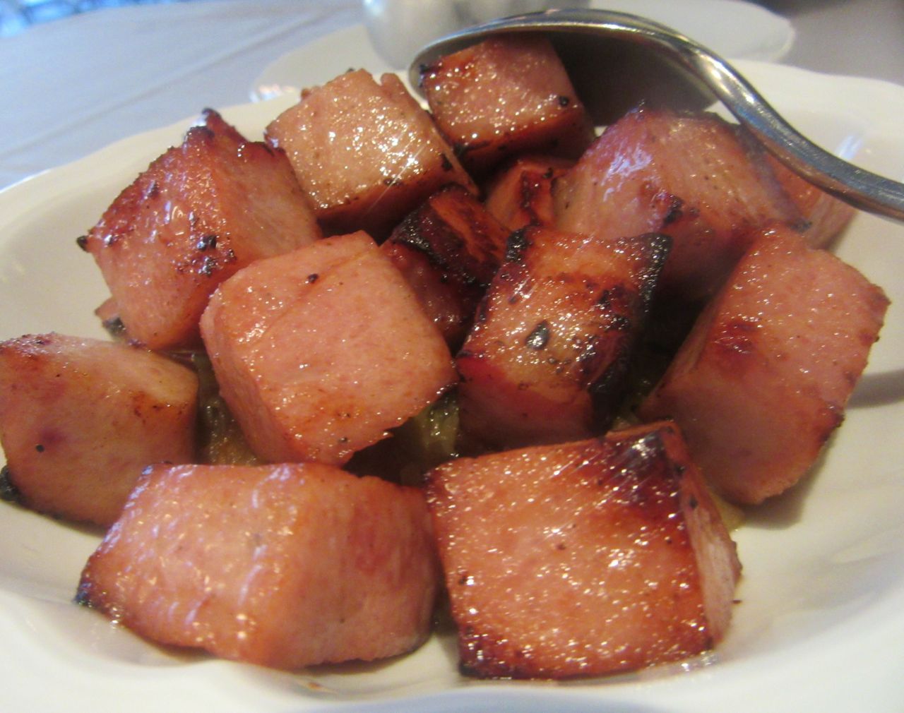 Another night, a friend wants the lardo-crusted steak, but as it’s only offered for two, she switches to the sweet and sour pork meatballs — amazing large globes, surprisingly soft and delicious. After sharing two pastas, one is all she could eat. Her husband and I chivalrously finish off the rest.