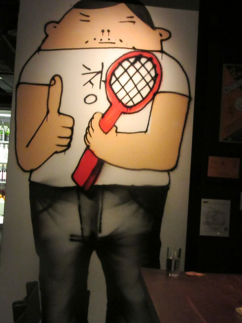 Looking at this wall from my bar seat, I wondered if the chef played squash?