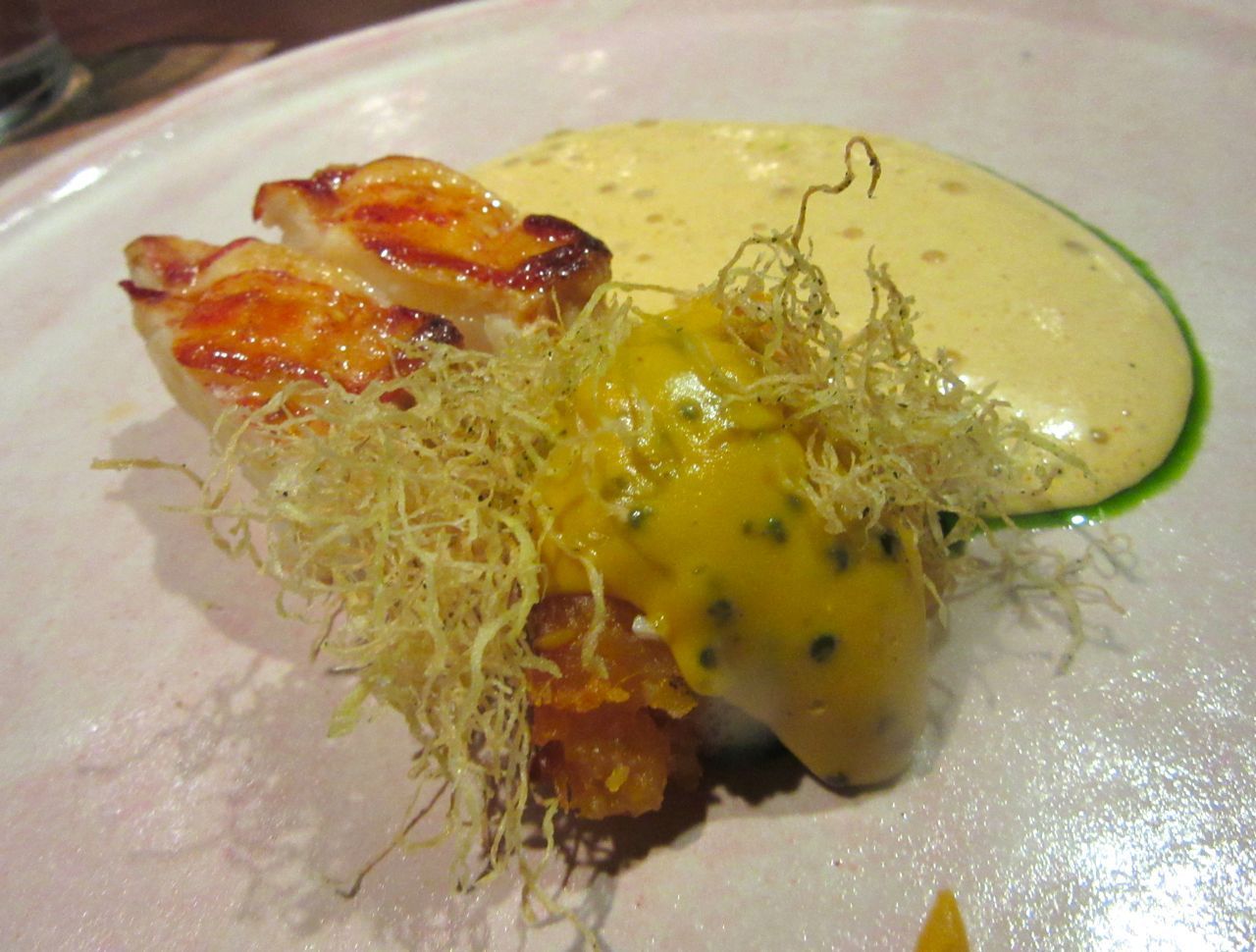 Ethereal, barely-cooked lobster comes with sweet potato, and apple soda.