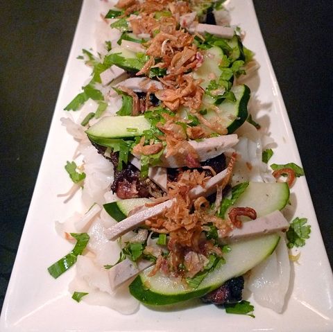 But there is no traffic that frigid Wednesday, the streets are clear and my driver knows exactly where to go. That’s how I manage to arrive half an hour early. The guardian at the door recognizes me from La Fonda del Sol. So much for anonymity. I perch at the bar waiting for someone to show me my seat. The bartender ignores me. I am not surprised. That’s was the drill at the old Ko. No one ever actually spoke. Cooks worked in total silence. In the distance, I spy The Chang himself glaring in this direction. Do I just imagine he is staring at me? He scuttles away into the back kitchen.