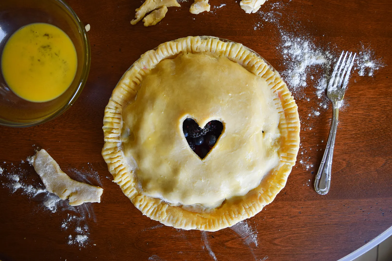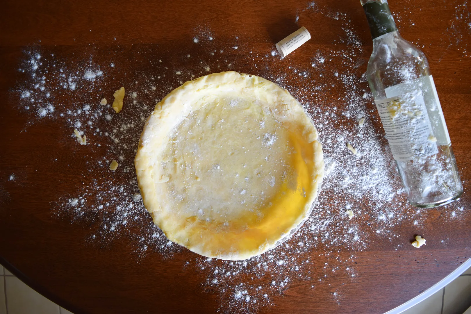 There we were, covered in flour, rolling out a pie dough with a wine bottle, his hands over mine, just feeling young and alive. We put the pie in the oven, finished our bottle of booze, and found ourselves so…. preoccupied… my guy and I almost let the pie burn.
