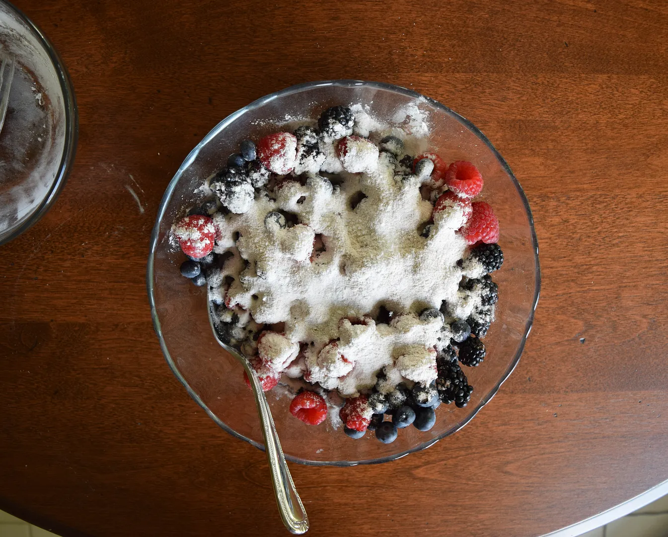 We caught it just in time: the crust perfectly golden, the inside mix of berries bubbling happily. The kitchen smelled like cinnamon and butter. Warmth. Home.