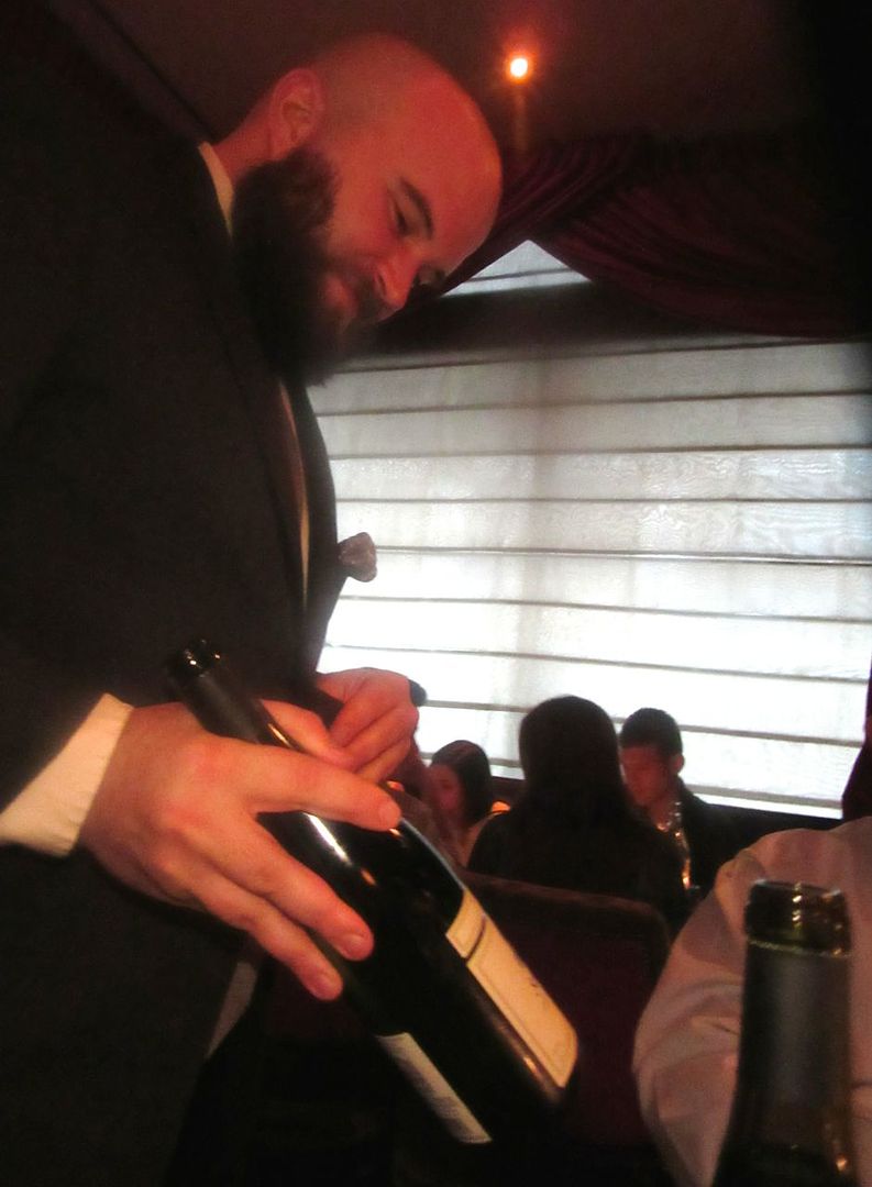 The sommelier with his Victorian beard goes well with the vintage look of the room.