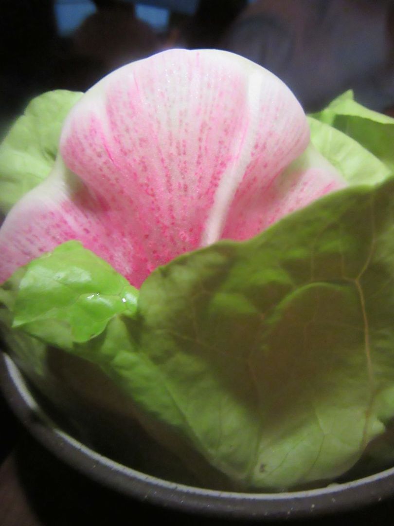 Lettuce leaves and radish thins make a lovely bouquet on the table, but not for long. I’m inspired to use them.