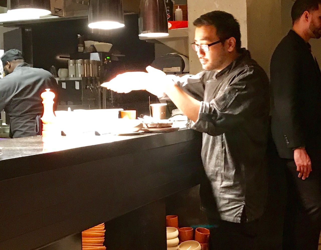 Ortzi’s chef expedites orders in full view of the modest 50-seat dining room. Photo by Dana Stoddard.