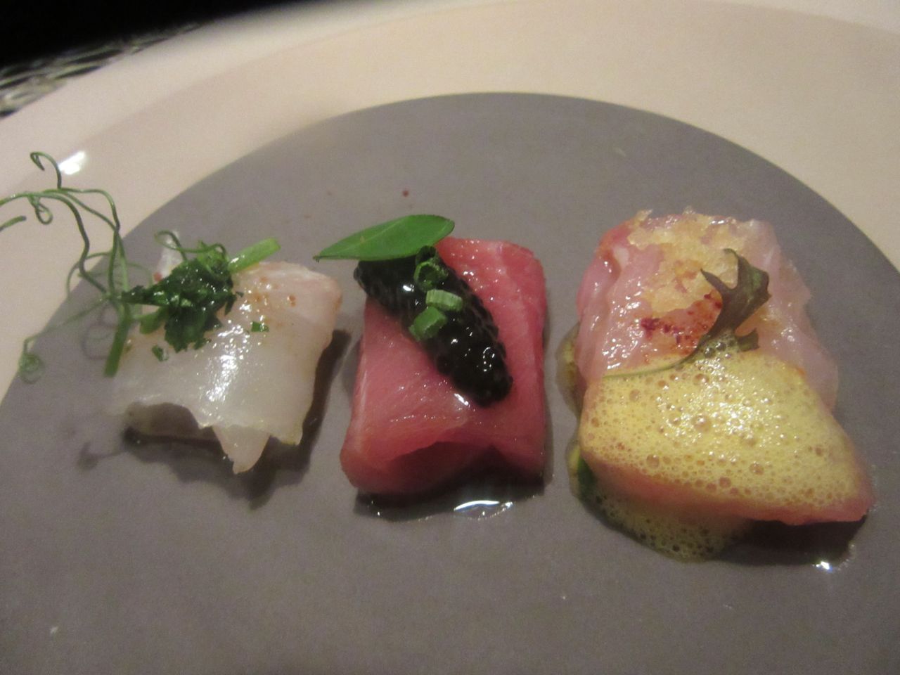 From the look of this indulgent amuse of the menu’s crudos, I can guess someone has recognized me.