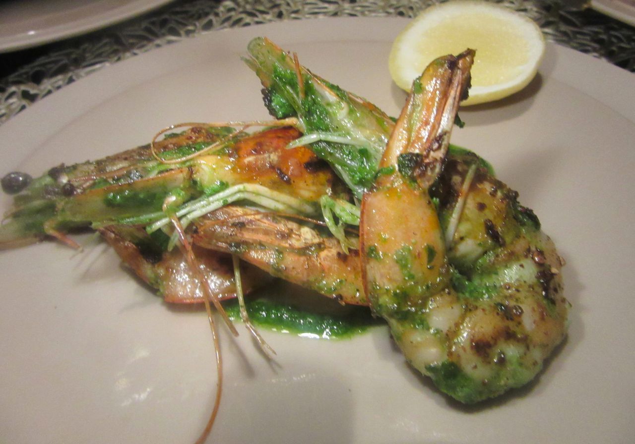 A trio of disappointingly small Spanish prawns are nicely dressed in a feisty garlic-lemon sauce.