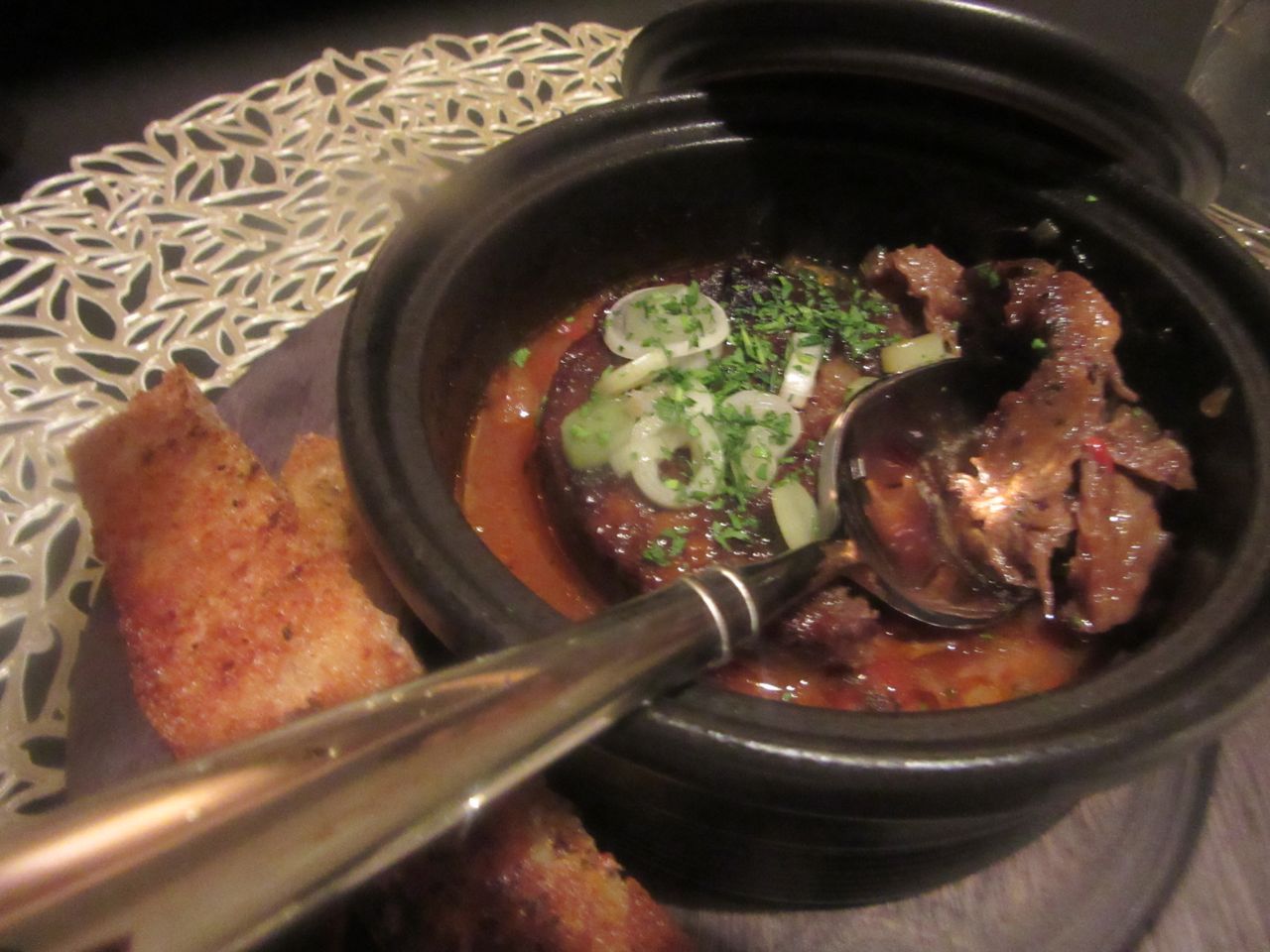 The braised oxtail with chickpeas is another extra from the kitchen. I’ve ordered crispy patatas Asturianas again, of course.