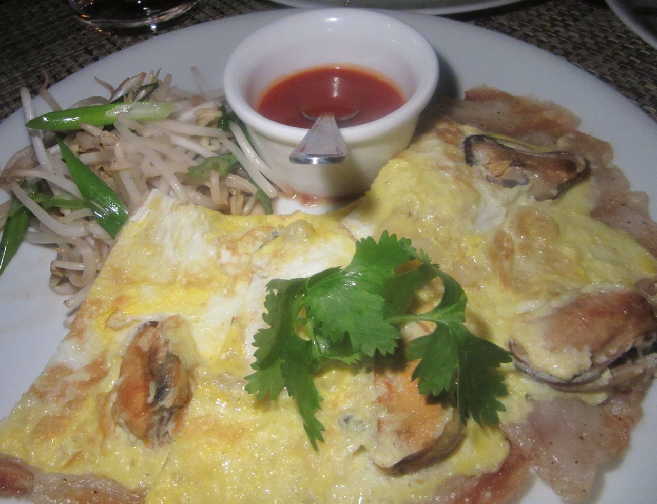In decades of reviewing Thai spots, I’ve never come across a mussel pancake like Chef A’s invention.