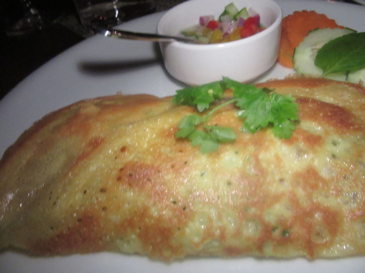 The chef sends out a coconutty crispy pancake filed with shrimp and chicken she will add to the menu.