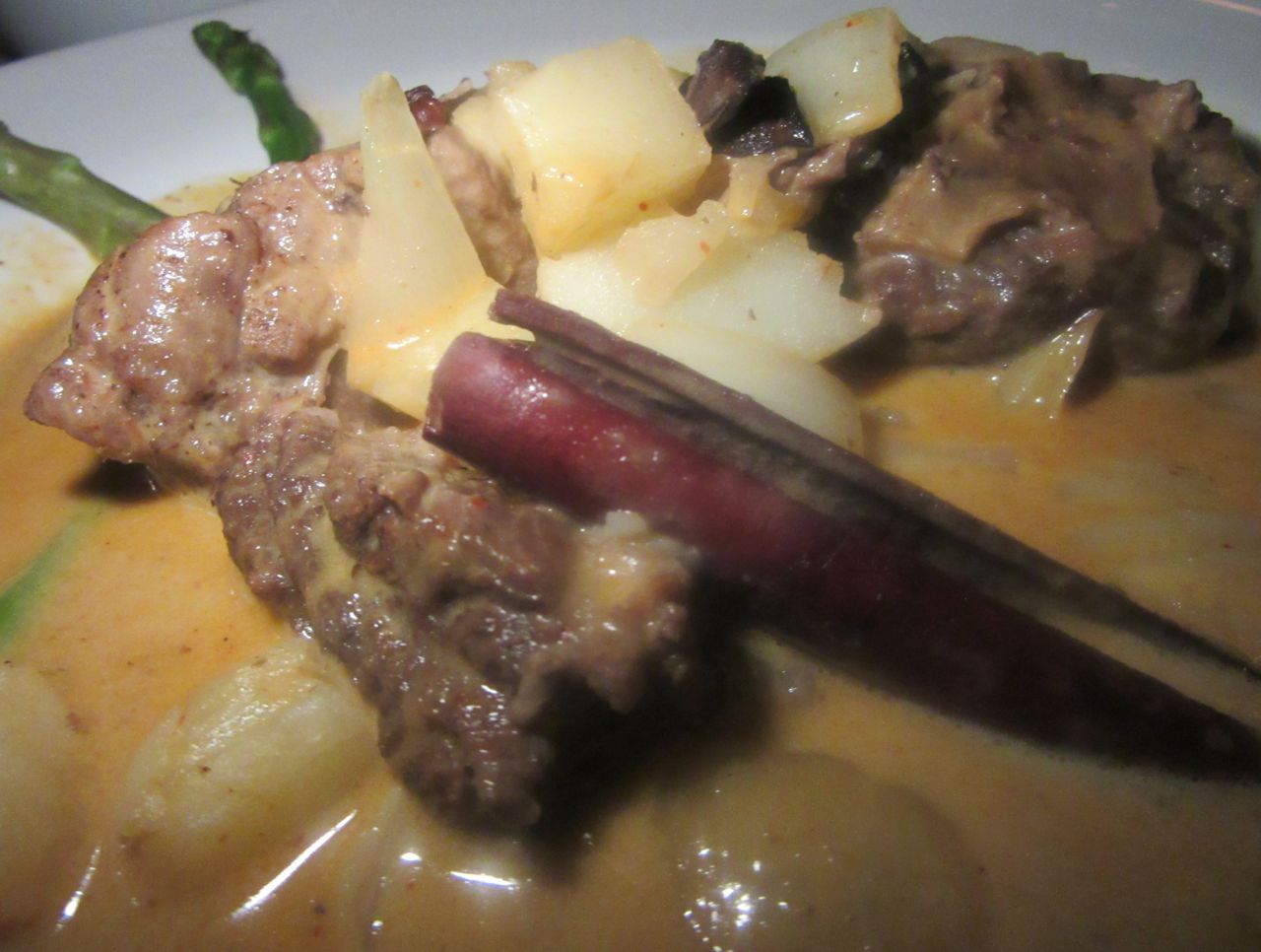 The short ribs in the fine coconut creamy maksamun comes with carrots, artichokes and cinnamon sticks.