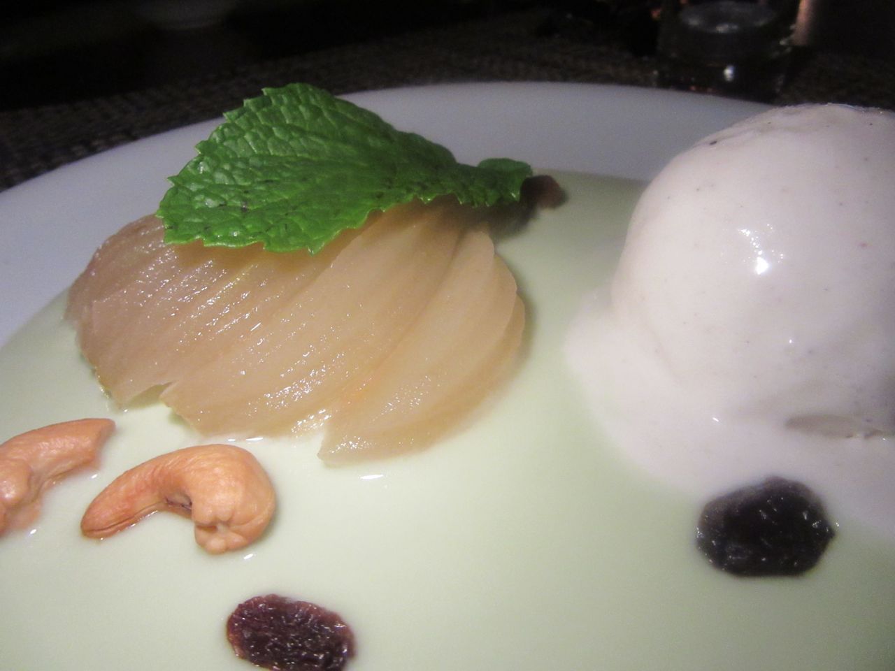 The poached pear is a little too bland. Maybe Asian bananas in vanilla flavored pandan is better.