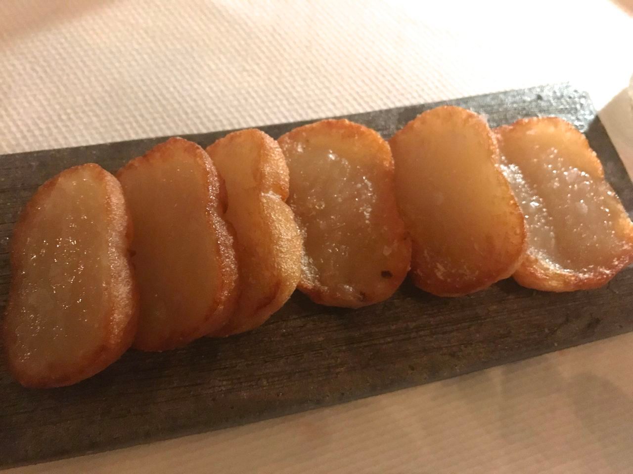 Octopus lovers will savor one long arm, tender and sweetly caramelized from the grill. A sweep of turbot in solemn splendor on the plate, arrives as rare as it can be and still be cooked. With each bite, it seems more perfect. Russet potatoes come all the same size from Lucky Dog Farm, the waiter explains, permitting these perfect slices confitted in duck fat. Definitely a must.