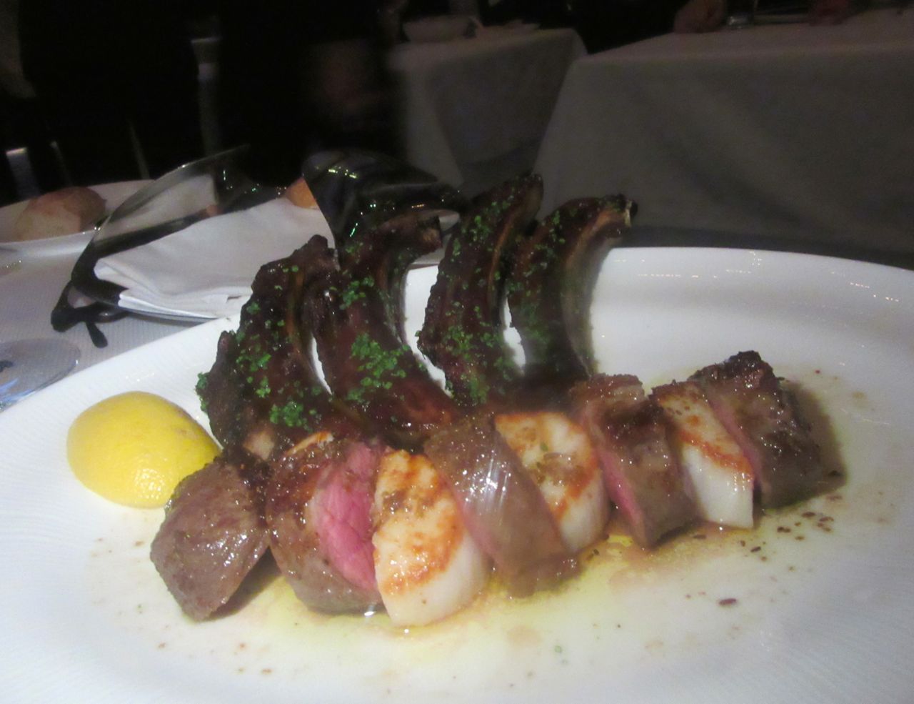 Cumin-scented rack of lamb and scallops is on the menu as surf and turf for two, $65 pp.