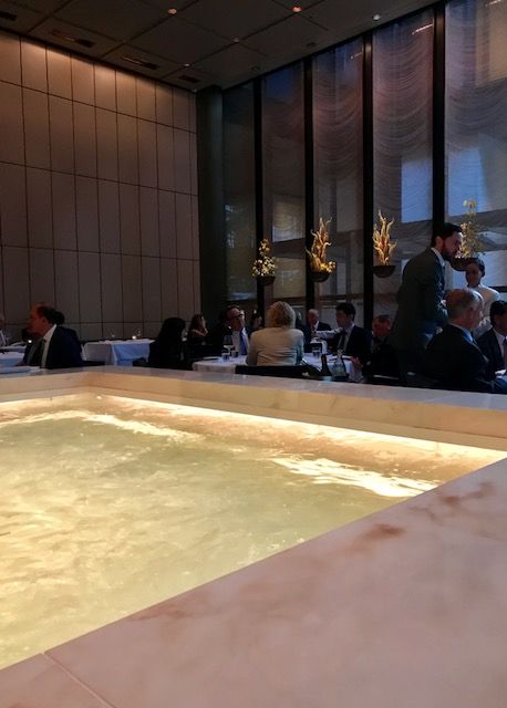 Millions were spent just on cleaning the landmark, creating two 21ST-century kitchens, furnishing the pricey show-off intimations of ‘50s luxury wheeling about in the Grill, creating the Pool Lounge in mother-of-pearl and mirror, finding lookalike metal and leather furniture and traveling to Japan to oversee artisans hand-painting fanciful sea creatures on the Pool plates.
