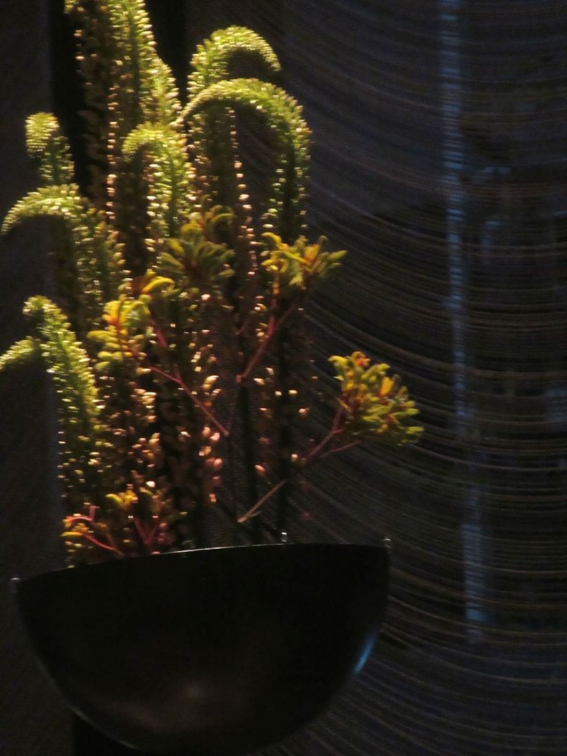 The big bowls of illuminated Eremurus that hang at the landmark rippling curtains strike me as an odd choice.