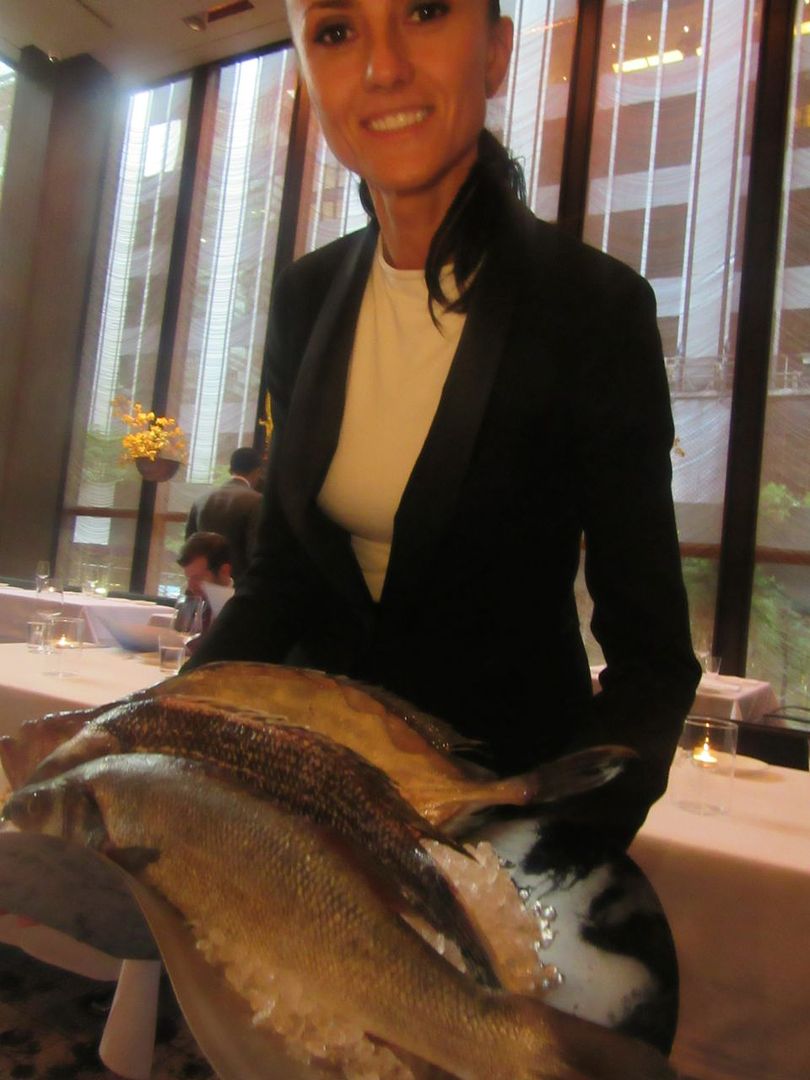 The menu changes, of course. It’s about fish and the daily catch is not predictable. One Saturday night Christine Cozac, the assistant general manager of the Pool, lugs a duo of giant fish to our table – looks like 25 pounds or more to me. But I assume we’d all have to eat the same fish. So we pass. On another evening, a Tuesday, there are only three items listed under “Toasts,” rather than the five offered earlier. But there’s an appealing collection of fish.