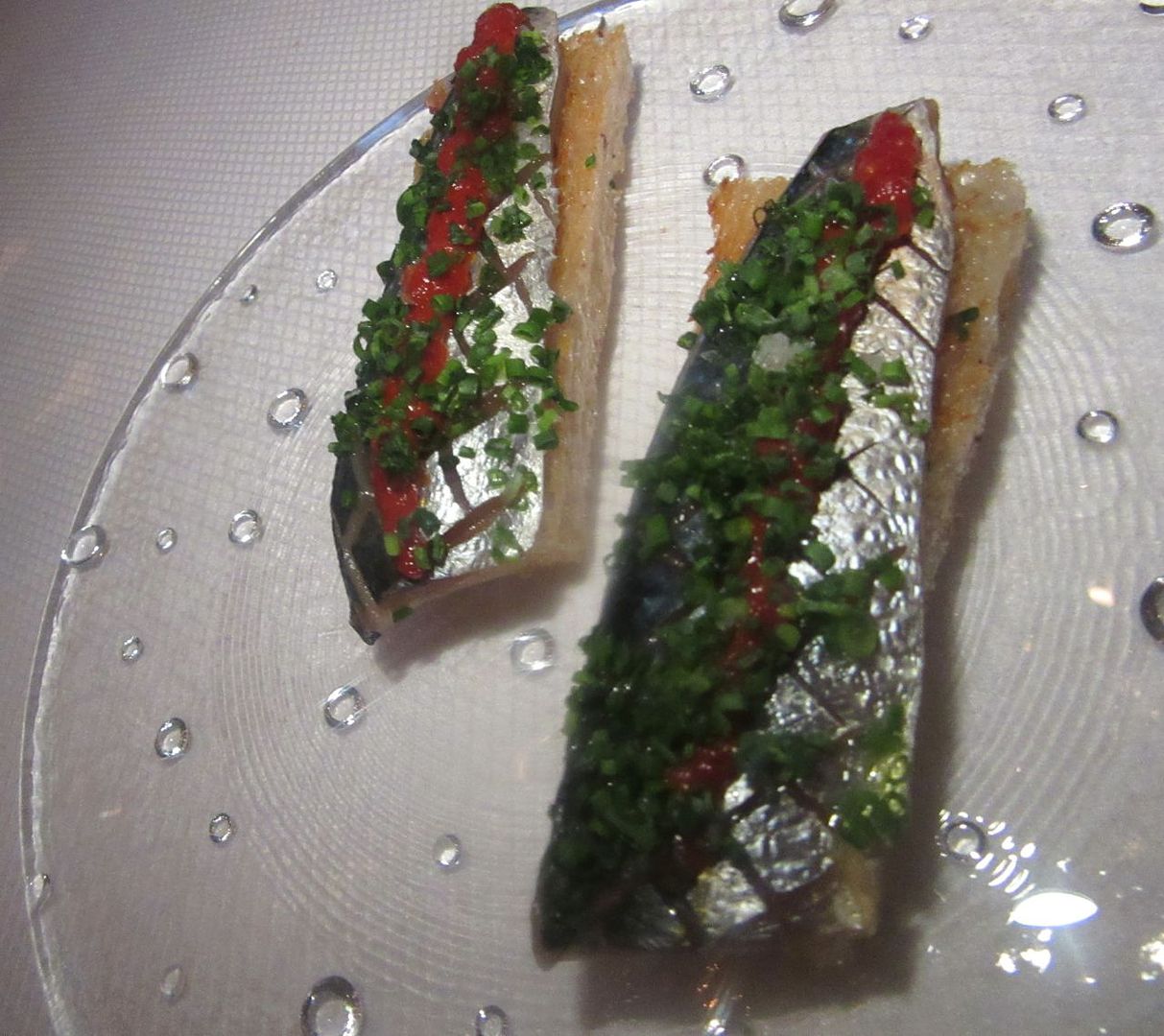 Another pretty toast offering is Greek sardines with piquillo and lemon.
