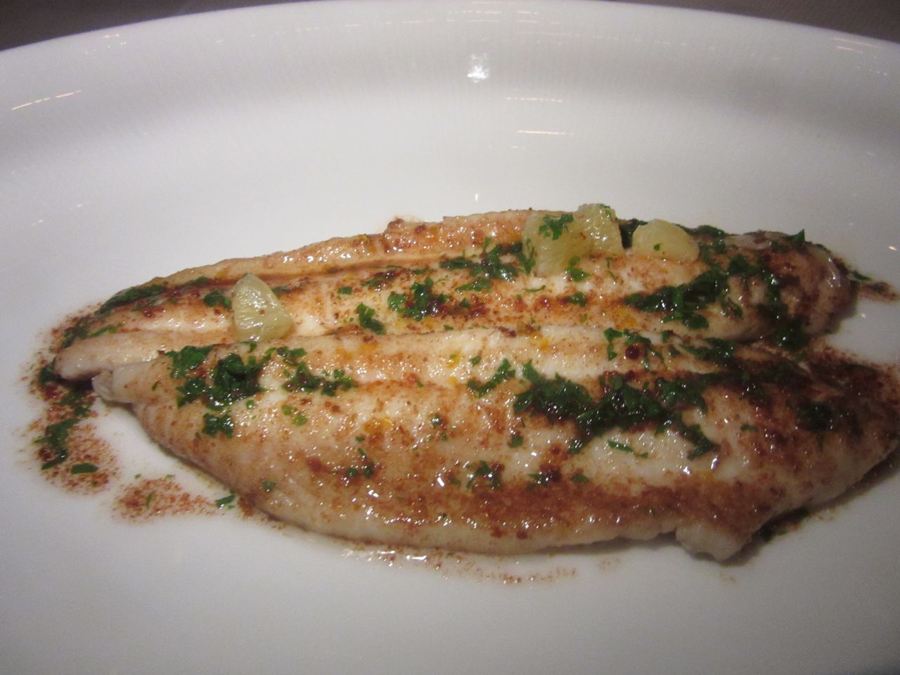 Two of us sharing the Dover sole find it overwhelmed by its saucing and also, too-cooked.