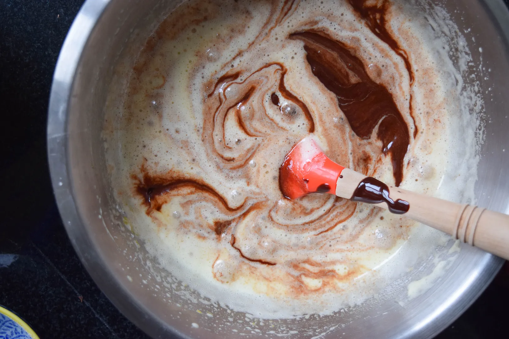 Add in the melted and cooled chocolate and stir to combine.